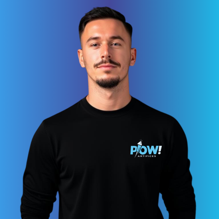 Pow Artifices est né de mon propre mariage. Comme beaucoup de futurs mariés, je voulais offrir à nos invités un moment fort, rempli d’émotion, un feu d’artifice de couleur qui nous ressemble. Ne trouvant aucun prestataire capable de répondre à cette attente, j’ai décidé de créer ce que j’aurais aimé vivre.